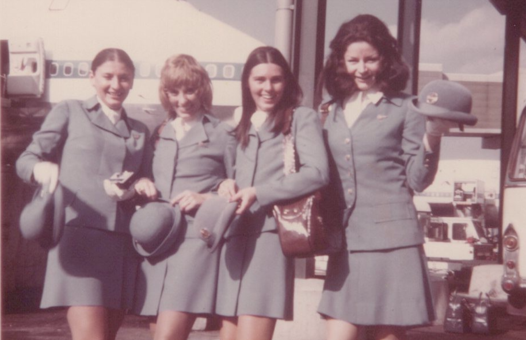 Renée Chenette (left) with two fellow Pan Am flight attendants. (Courtesy of Renée Chenette)