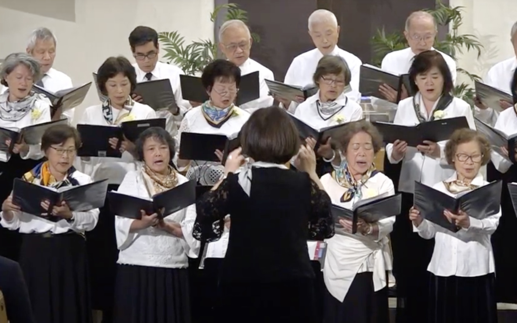 People singing a hymn during a commemoration at the Irvine Taiwanese Presbyterian Church in Laguna Woods, Calif., on May 14, 2023. (Annie Wang/NTD Television)