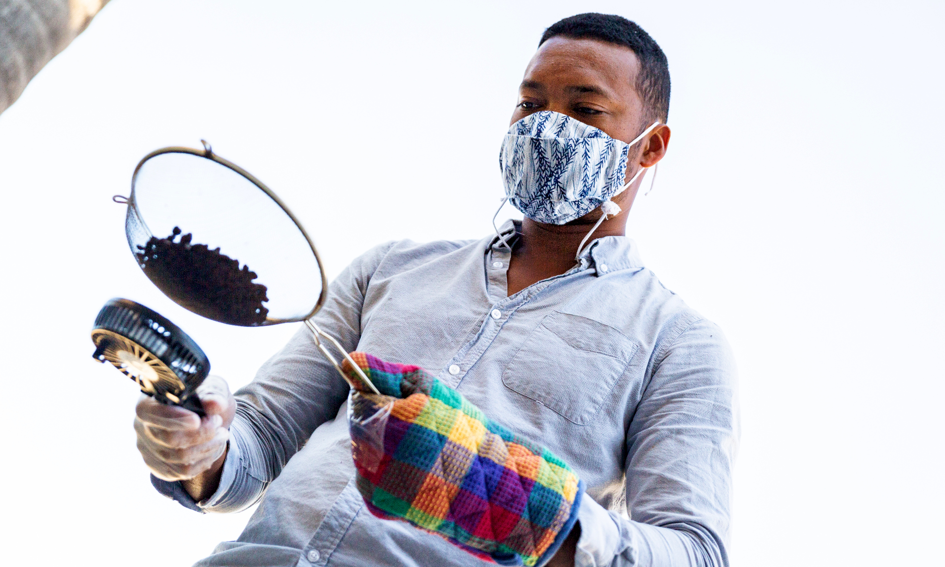 During the roasting process, Perkins remains focused and undistracted. The songs of Frank Sinatra fill the air in his parent’s garage, which doubles as his studio, the sounds mixing with the sweet scent of coffee beans from Ethiopia—the source he’s chosen for the current batch.