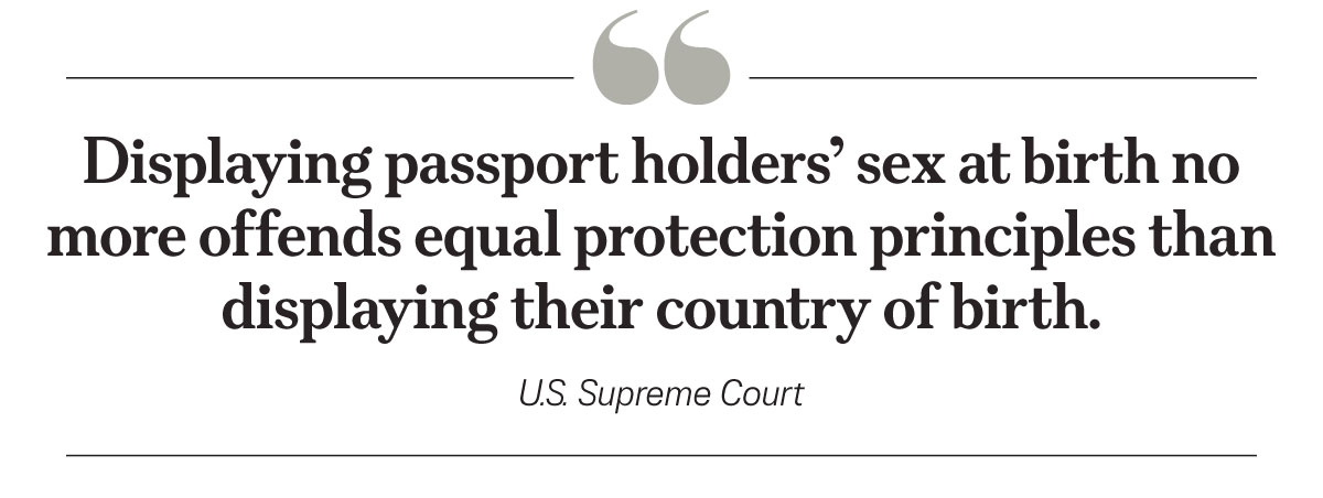 “Displaying passport holders’ sex at birth no more offends equal protection principles than displaying their country of birth—in both cases, the Government is merely attesting to a historical fact without subjecting anyone to differential treatment,” the court’s brief order reads.