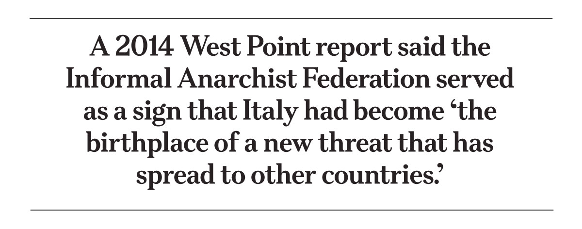 By then, the Informal Anarchist Federation had been responsible for “dozens of attacks” over a 25-year span in Italy and elsewhere—a trend that Italian authorities had “underestimated” partly because the attacks caused no fatalities, according to the West Point report.