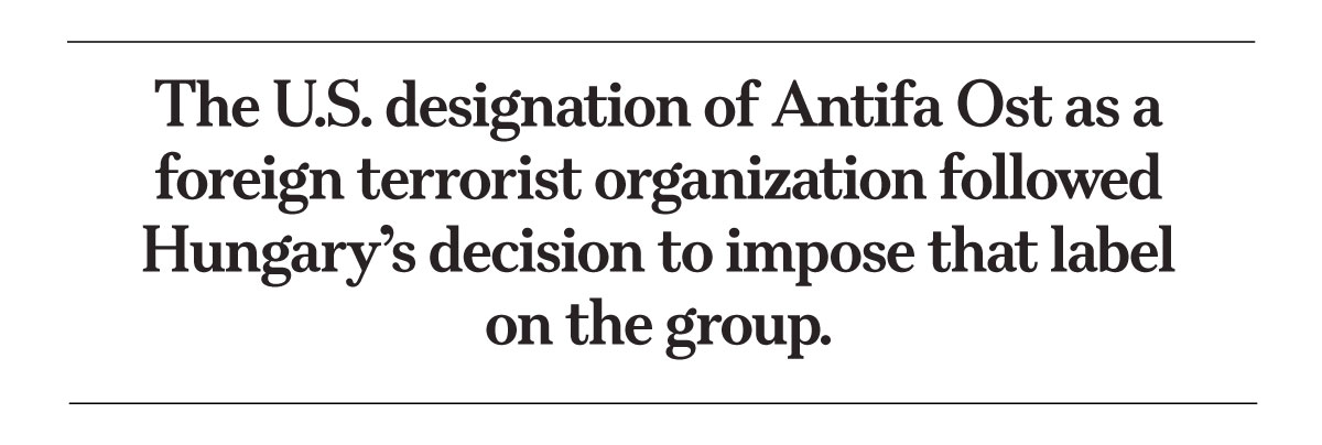 The U.S. designation of Antifa Ost as an FTO followed Hungary’s decision to impose that label on the group.