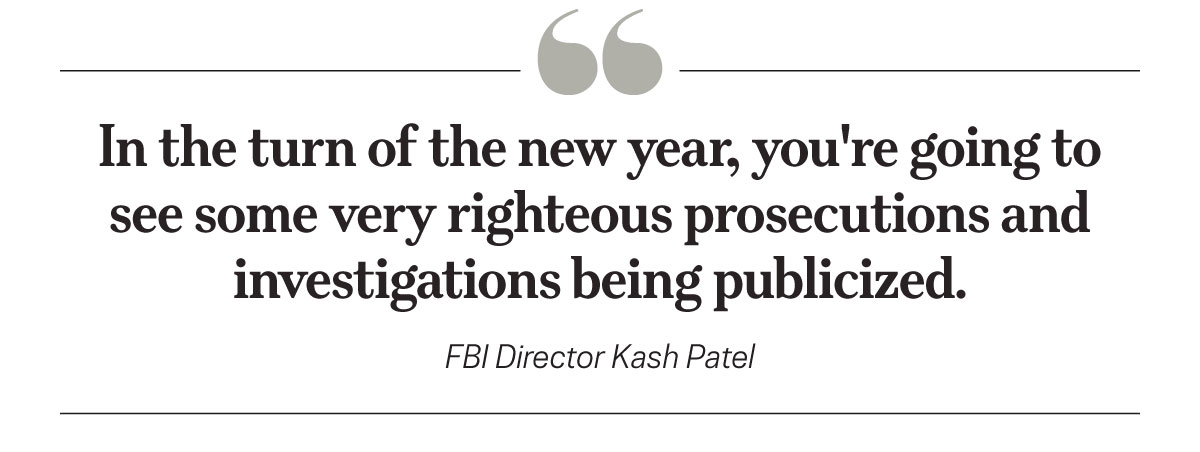 “In the turn of the new year, you’re going to see some very righteous prosecutions and investigations being publicized.”