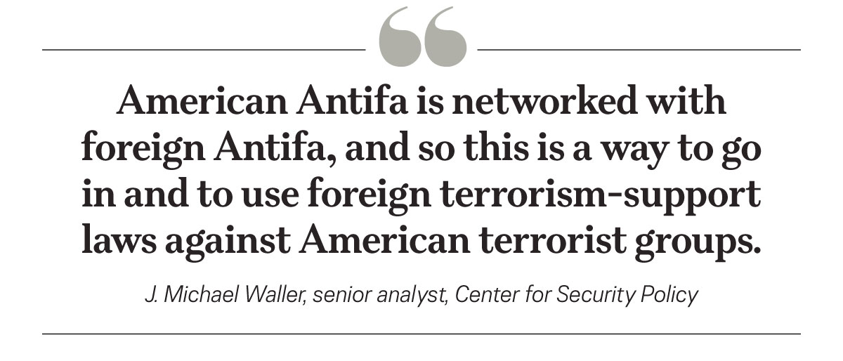 “American Antifa is networked with foreign Antifa, and so this is a way to go in and to use foreign terrorism support laws against American terrorist groups,” Waller said.