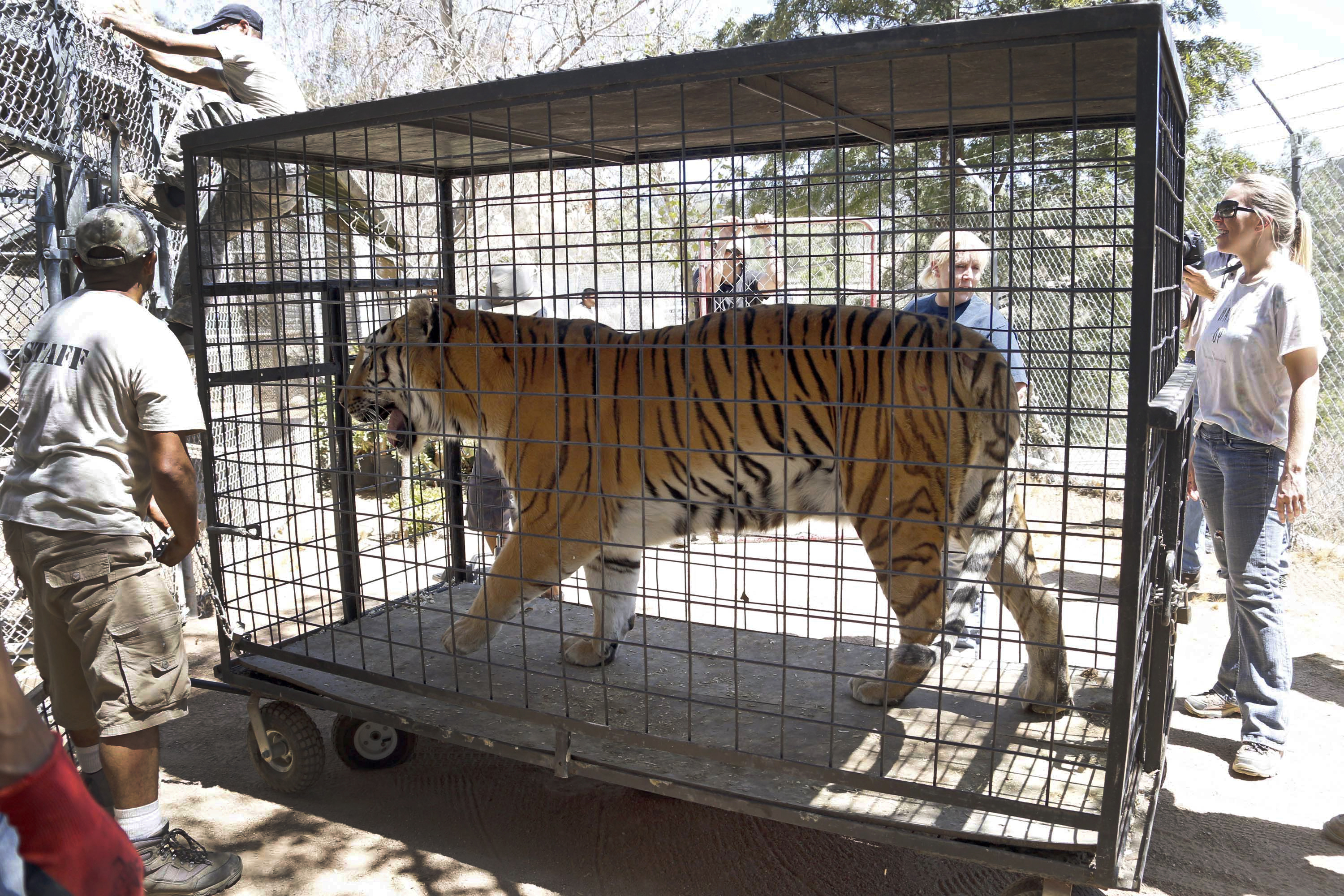 LOS ANGELES — About a dozen lions, tigers, cougars and other big cats have returned to a Los Angeles sanctuary four days after they were evacuated ahead of a fast-moving wildfire.