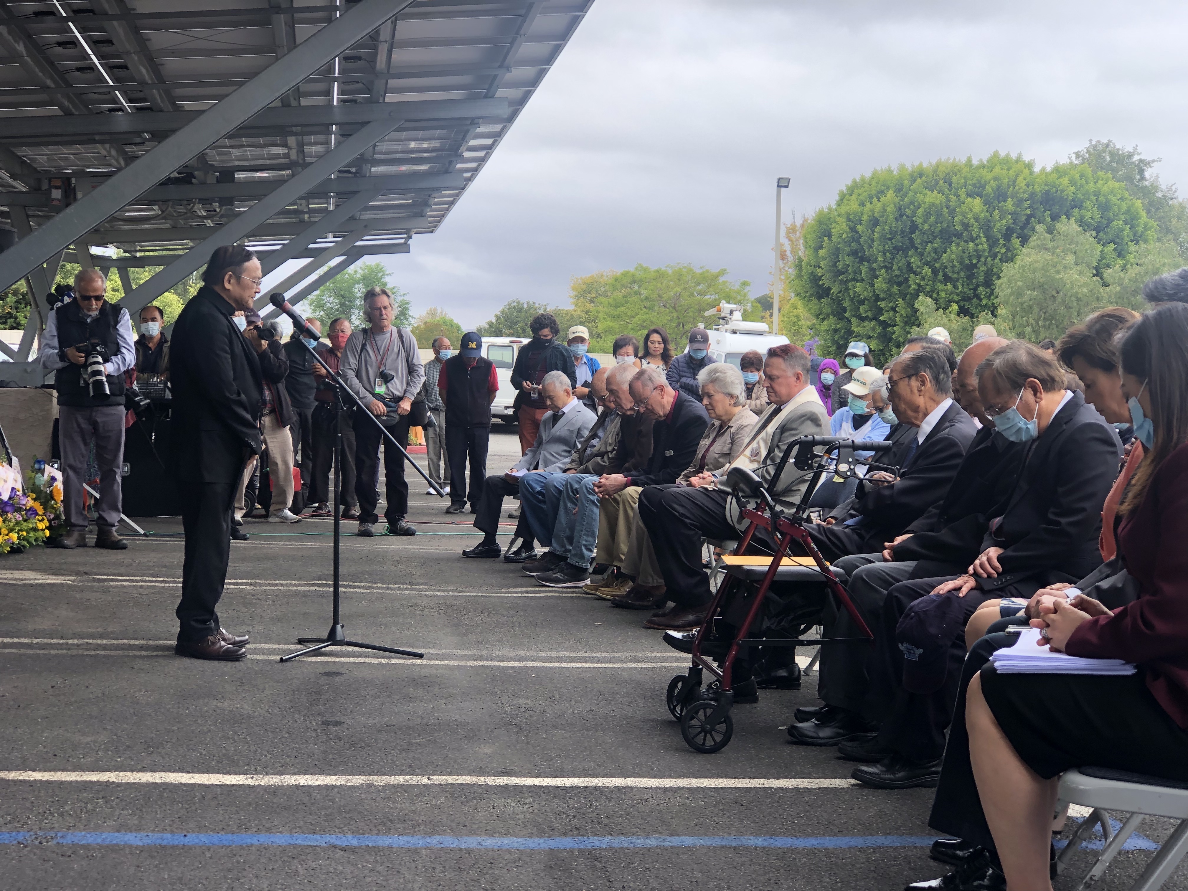 Richard Lin, the deputy director-general of the Taipei Economic and Cultural Office in Los Angles, spoke to mourners expressing his grief for the victim’s families and urging the Taiwanese American community to support each other during these difficult times.