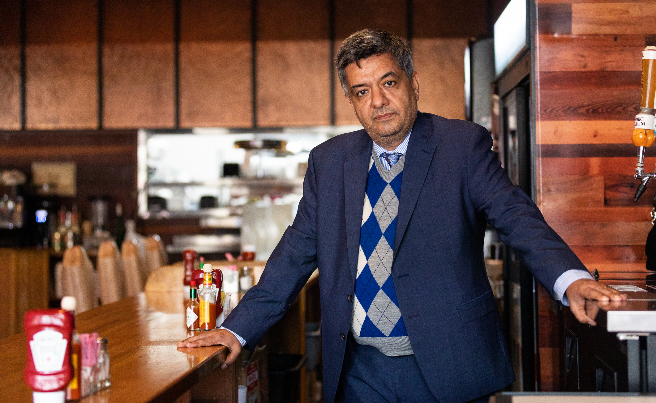 Restaurateur and member of the West Los Angeles Chamber of Commerce Roozbeh Farahanipour at stands in his restaurant in Los Angeles, Calif., on Nov. 18, 2021. (John Fredricks/The Epoch Times)