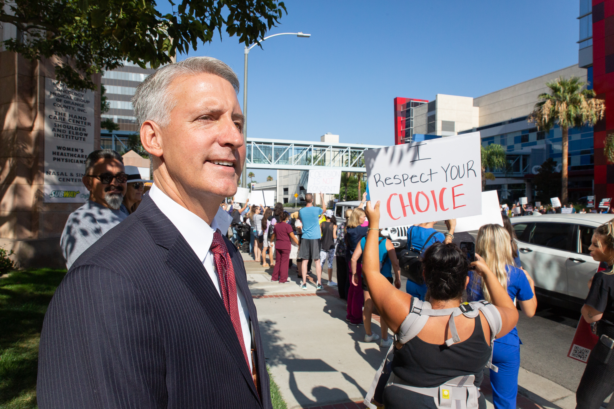 On Aug. 9, nearly 200 health care workers protested against California’s vaccination mandate in Orange County.