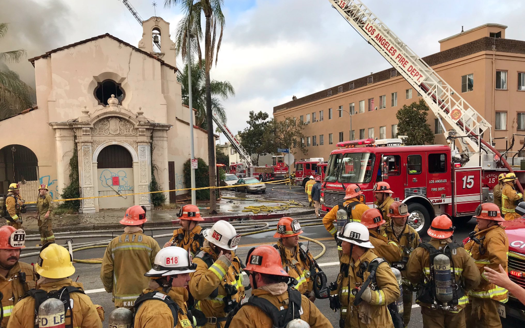 Fire ripped through the abandoned church near downtown L.A., destroying the historic building.