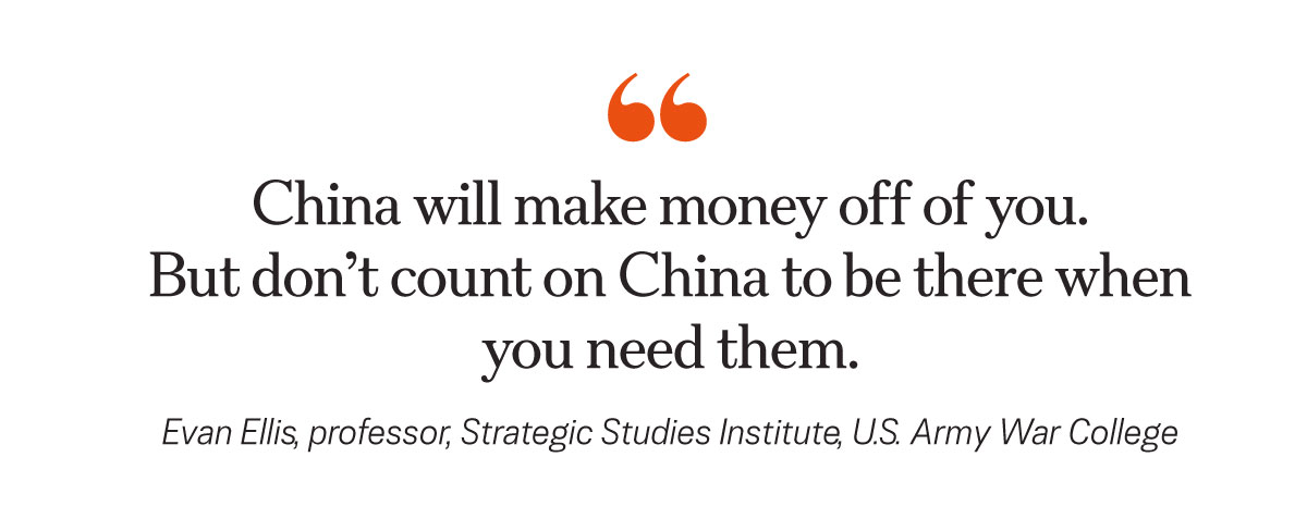 “China will make money off of you,” he said. “But don’t count on China to be there when you need [it].”