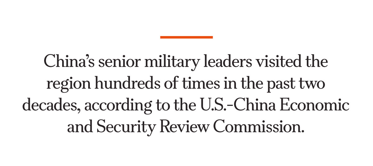 China’s senior military leaders have visited the region hundreds of times in the past two decades, according to the U.S.-China Economic and Security Review Commission. Concurrent with these activities was a stream of military exchanges, joint drills, and arms sales.