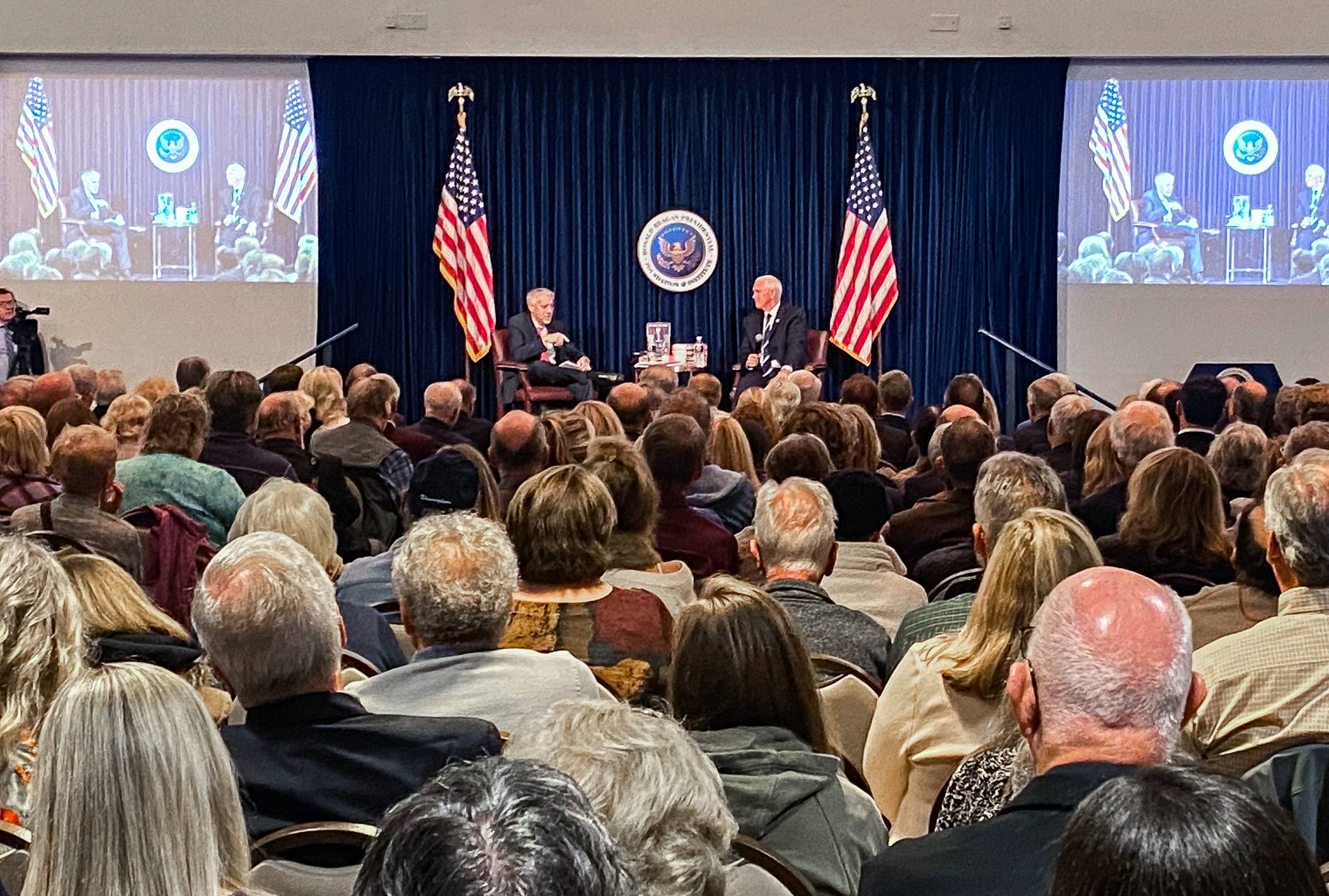 The discussion was infused with humorous moments, but Pence also shared some emotional memories of his family and meeting his wife. Pence talked about his father who was a Korean War veteran, serving in the U.S. Army, who he called the “secret star” of the book.