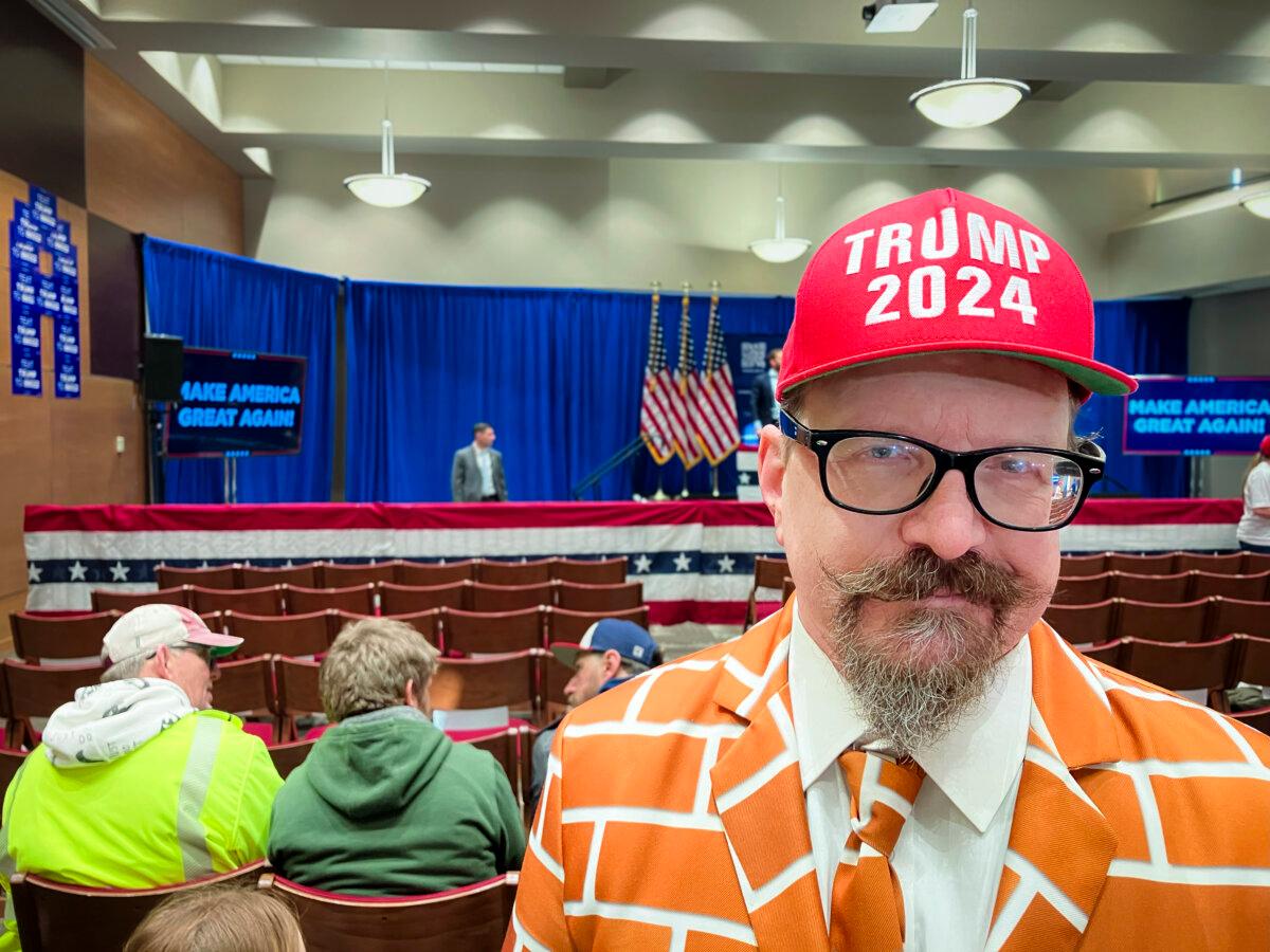 Many volunteers wore Trump regalia. A few sported DeSantis gear or garb promoting Ramaswamy or Nikki Haley, the former South Carolina governor and ambassador to the United Nations under Trump. They sat elbow-to-elbow, ribbing each other, wondering whether the ice on Plainfield Lake or in Cedar River eddies was solid enough for fishing shanties. Winter walleye is the best-tasting fish, they agreed.