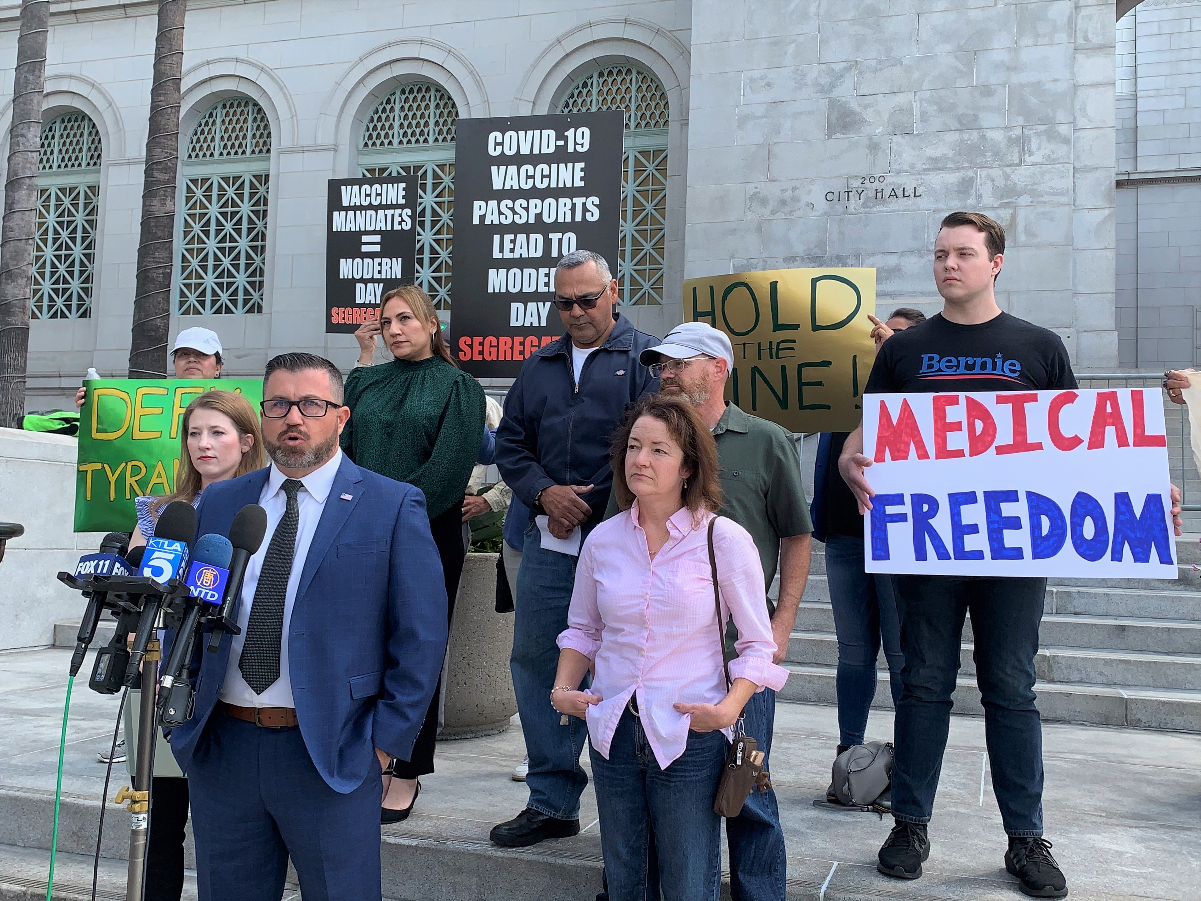 RollCall4Freedom, LLC. (RC4F), a group composed of 98 Los Angeles police officers and city employees, filed a lawsuit on March 15 in the district court for the Central District of California, arguing that the city’s vaccine mandate violates the U.S. Constitution, the group said in a press conference held in front of the City Hall on March 17.
