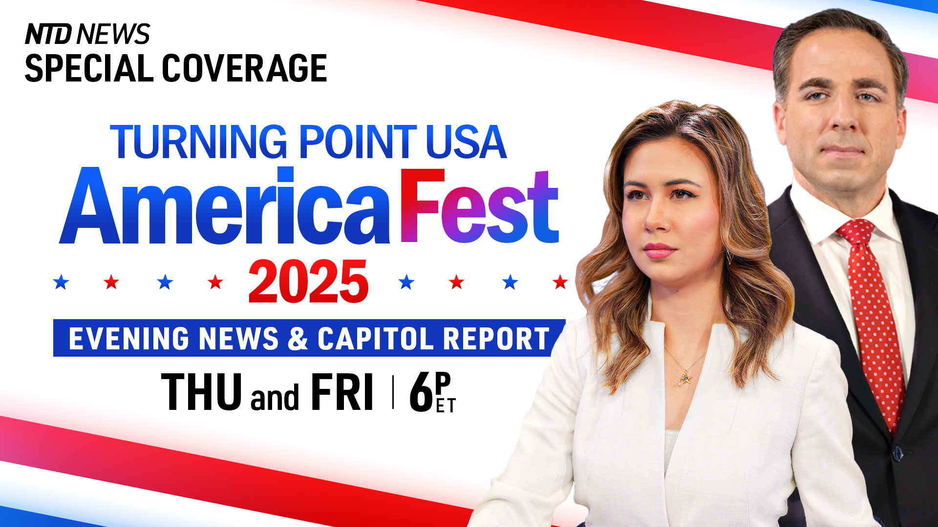 NTD Evening News presents a special live broadcast from Day 2 of Turning Point USA’s AmericaFest 2025 in Phoenix, Arizona.