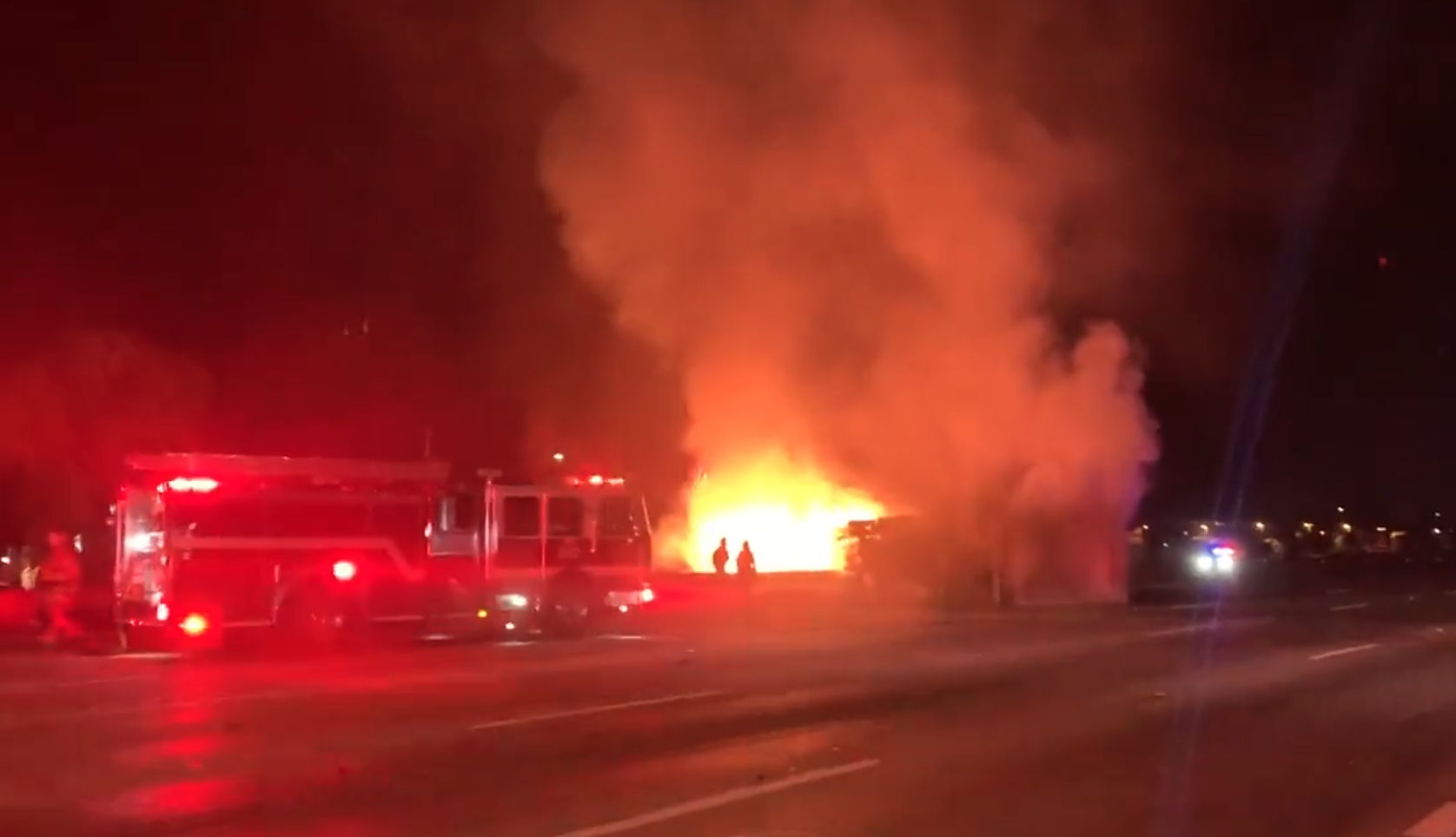 IRVINE, Calif.—A man was killed and two others injured Sept. 24 during a multi-vehicle crash on the Santa Ana (5) Freeway in Irvine that included a well-involved big rig fire, authorities said.