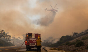 “I have not been ‘baptized’ by a water drop just yet,“ an Orange County Fire Authority photographer told The Epoch Times as a plane flew past. “It’s really only a matter of time, though.”