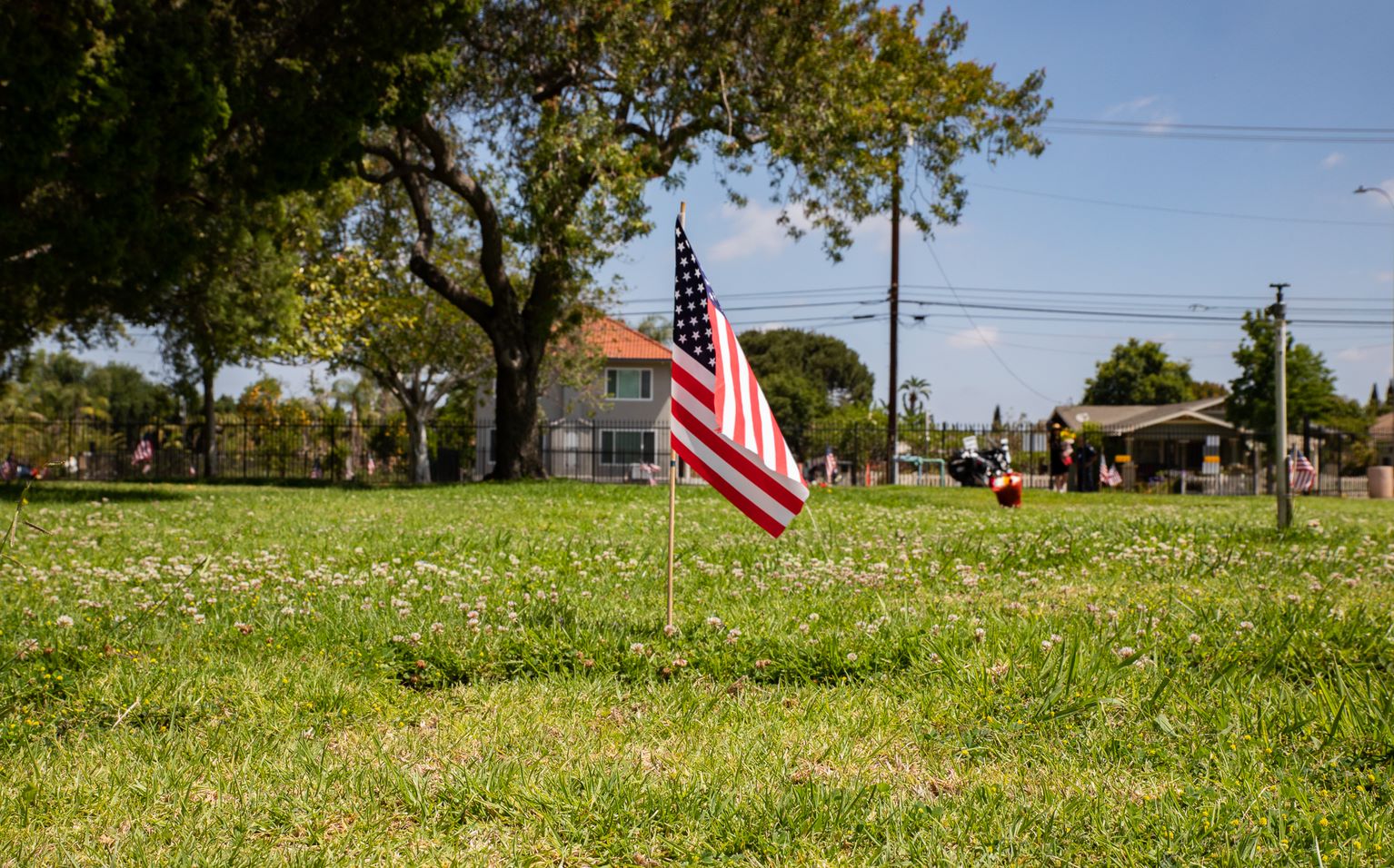 Surrounding the Salinas family were about 3,000 small American flags scattered throughout Fairhaven Memorial Park in Santa Ana, California—honoring veterans of the U.S. military forces.
