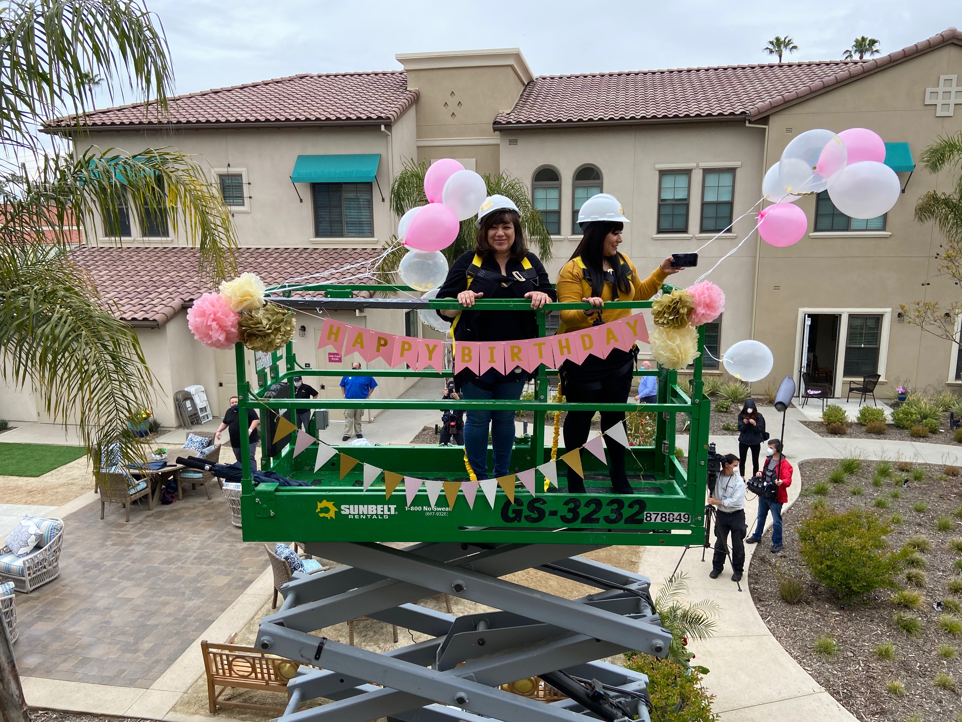 Cavazos rode on a 30-foot construction lift to her friend’s window on the second floor to wish her a happy birthday for the 26th time.