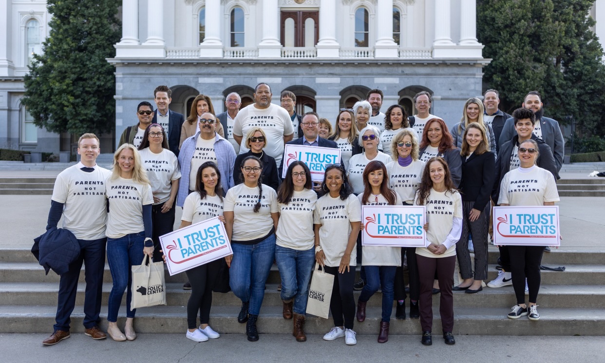 (L-R) Jonathan Zachreson, founder of Reopen California Schools; Sharon McKeeman, founder of Let Them Breathe; and Lance Christensen, California Policy Center’s vice president of education policy and government affairs, attend the second annual Parent Union Legislative Summit in Sacramento, California, on Feb. 8, 2023. (Courtesy of California Policy Center)