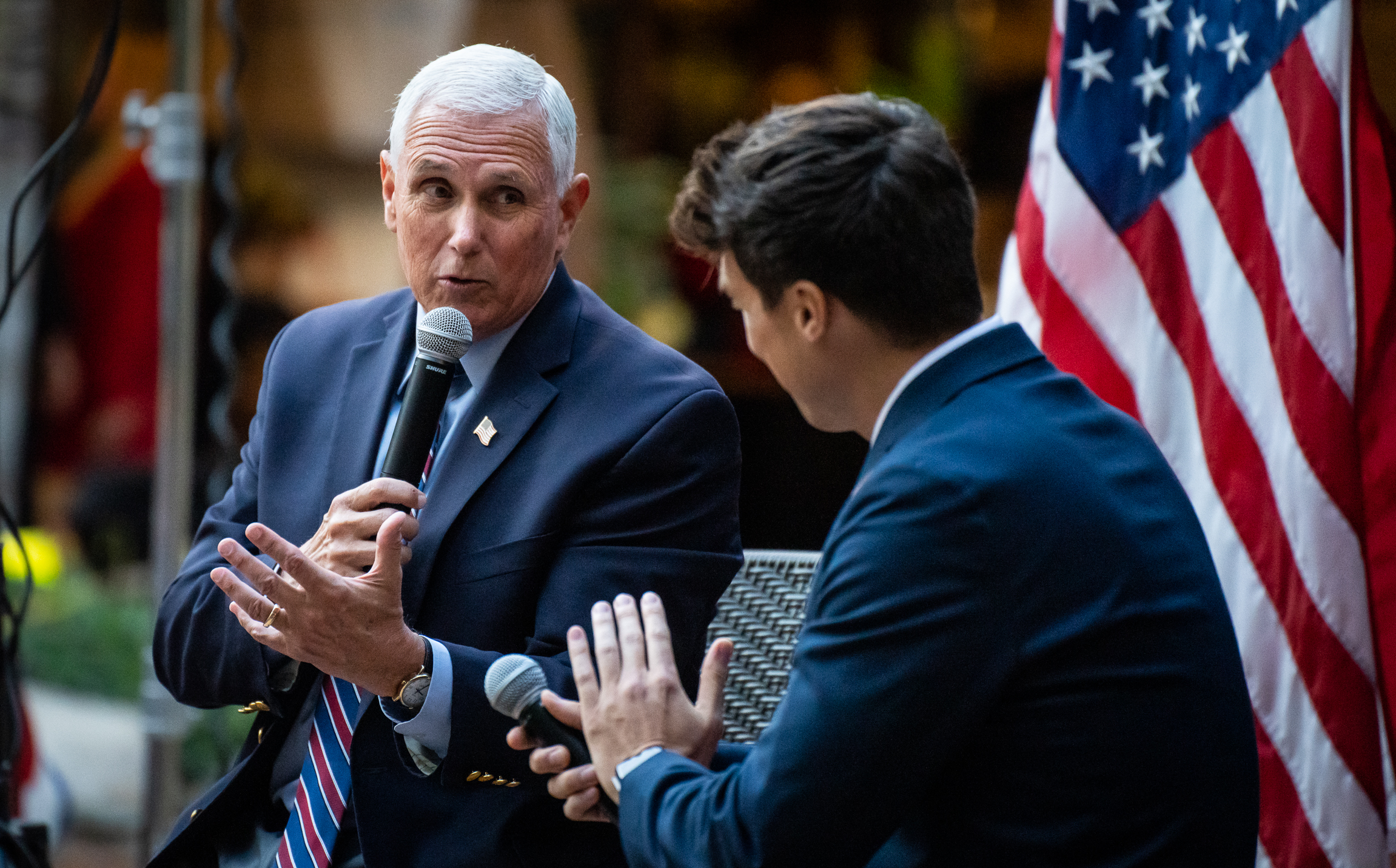Pence said President Joe Biden and his administration have “weakened America at home and abroad” and urged young conservative leaders to “step forward” and run for office.