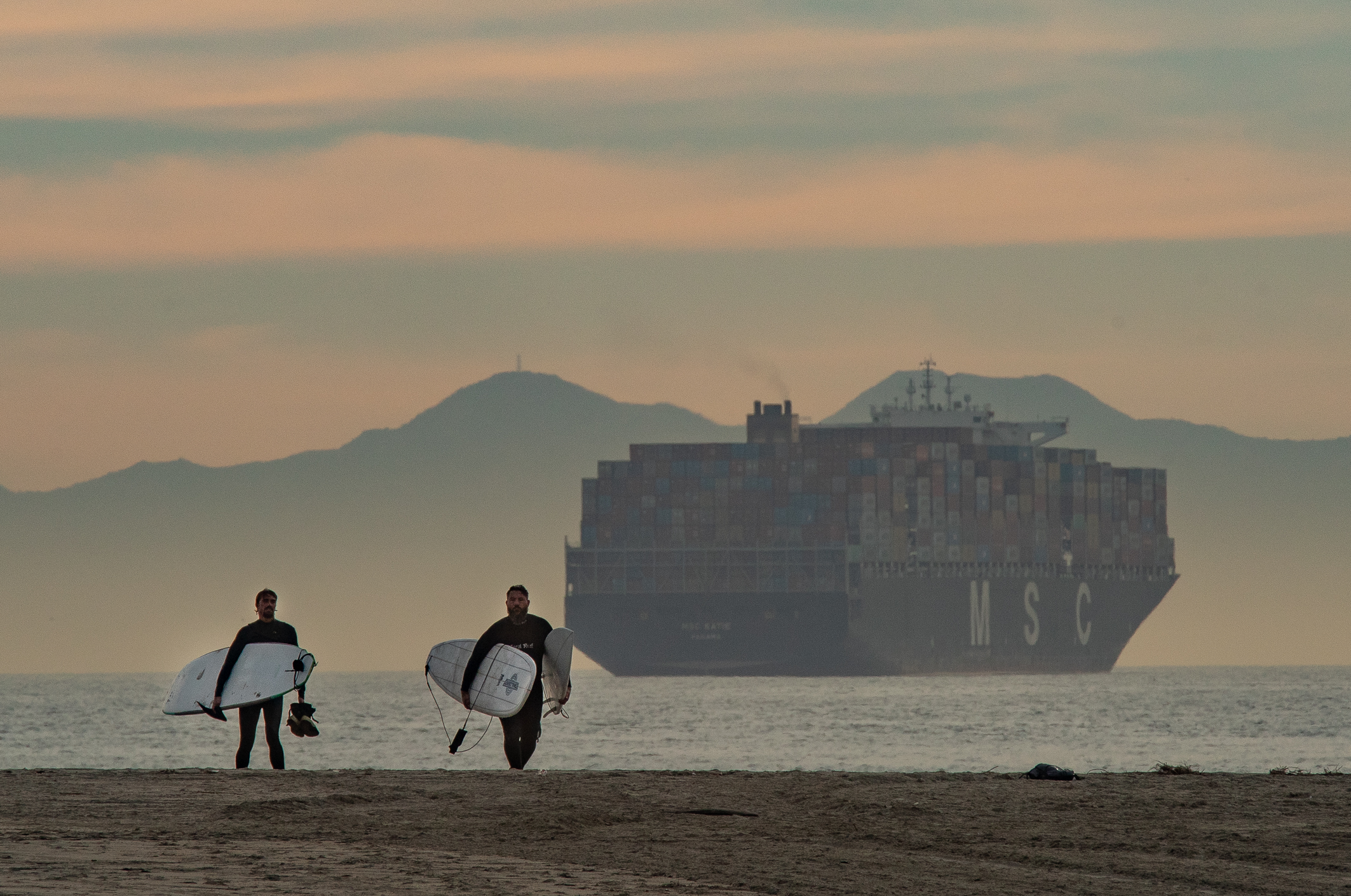 The Ports of Los Angeles and Long Beach, California, face issues of congestion as cargo vessels continue to line the horizon of the Pacific Ocean. (Photos by John Fredricks/The Epoch Times)