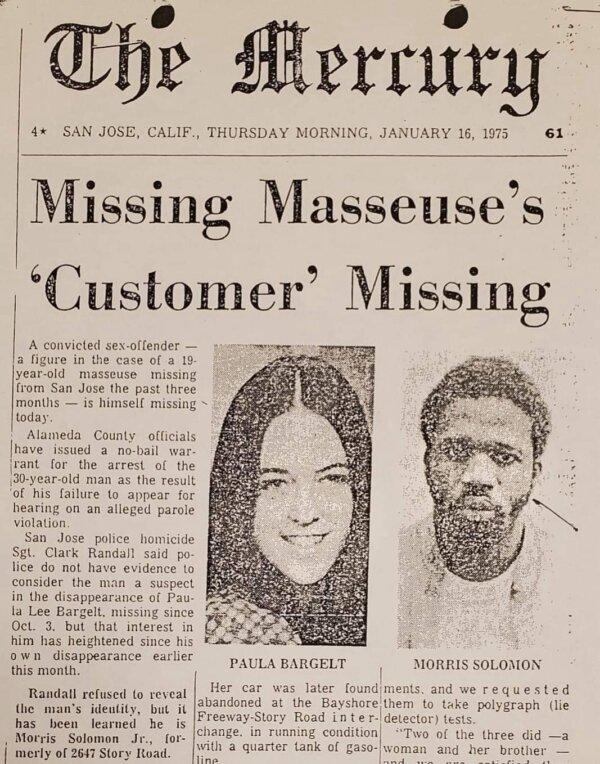 A 1975 newspaper clipping of Morris Solomon Jr.'s disappearance during an investigation of a young woman who went missing from San Jose after meeting him. (Courtesy of Antonio Harvey)