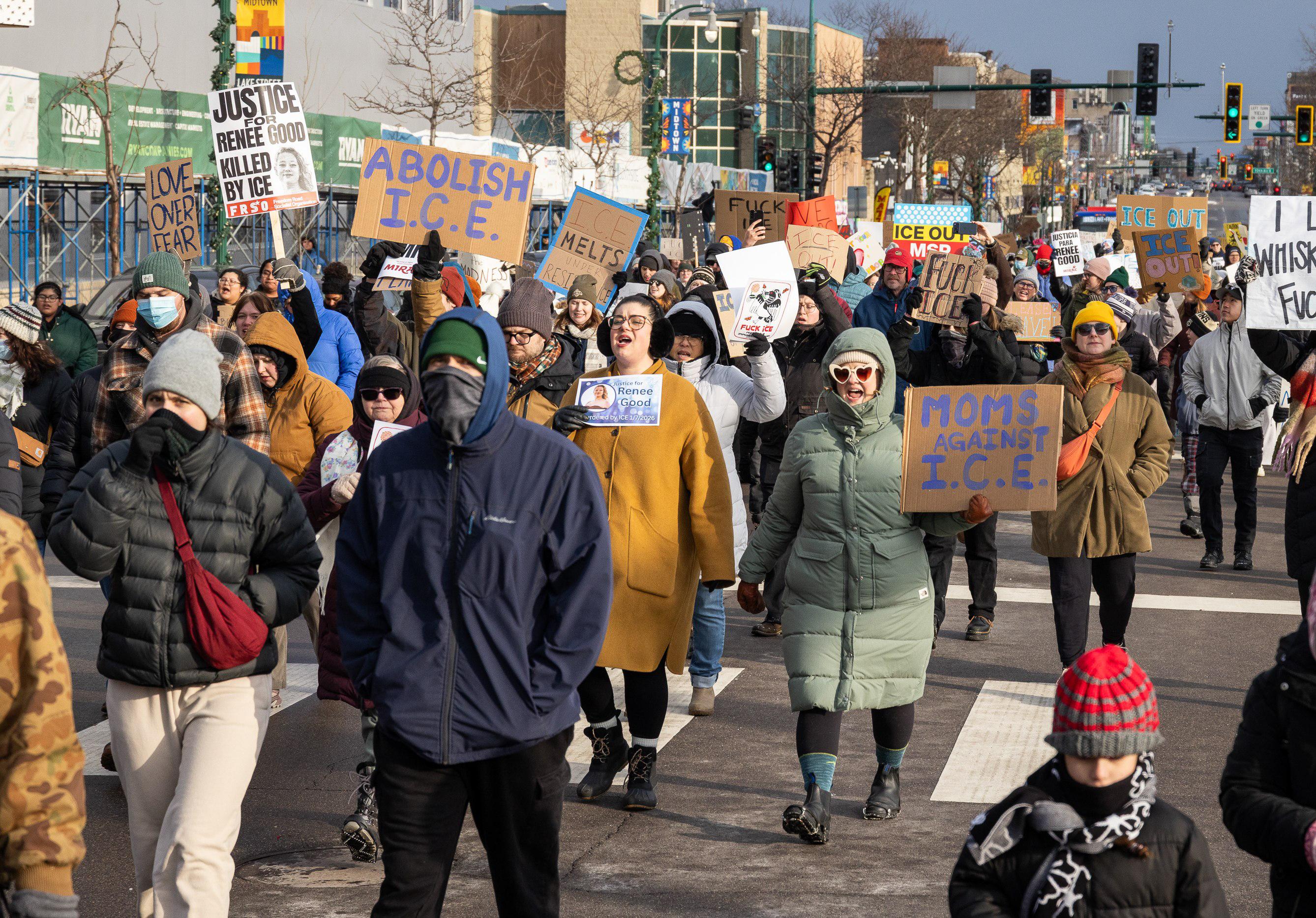 In downtown Minneapolis, law enforcement detained 30 demonstrators during marches in the street on the evening of Jan. 9 and into the early morning of Jan. 10. Demonstrators also targeted hotels they believed to be hosting ICE.