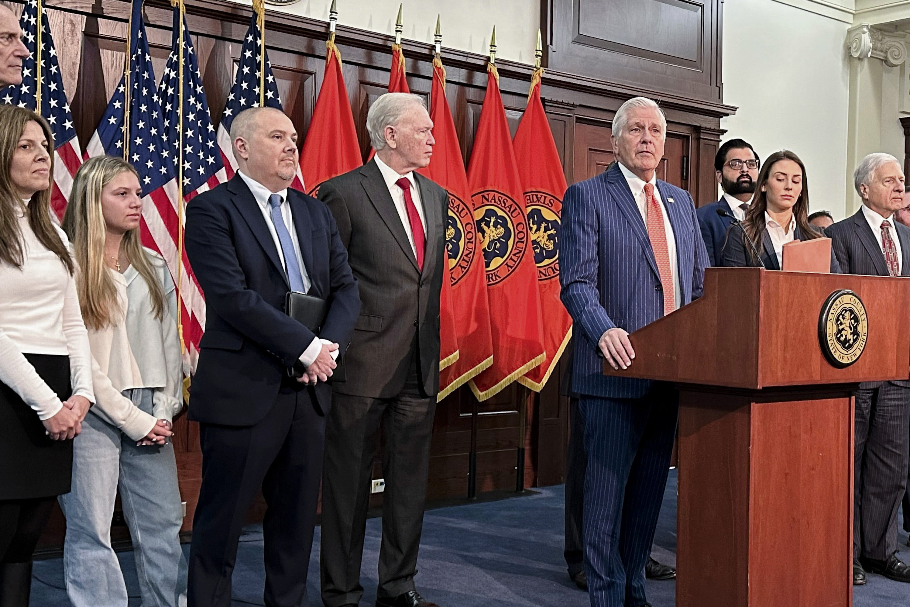 The video touts Blakeman’s accomplishments, such as making Nassau County the “safest county in America,” not increasing taxes, prohibiting sanctuary policies, balancing the budget, and protecting women’s sports.