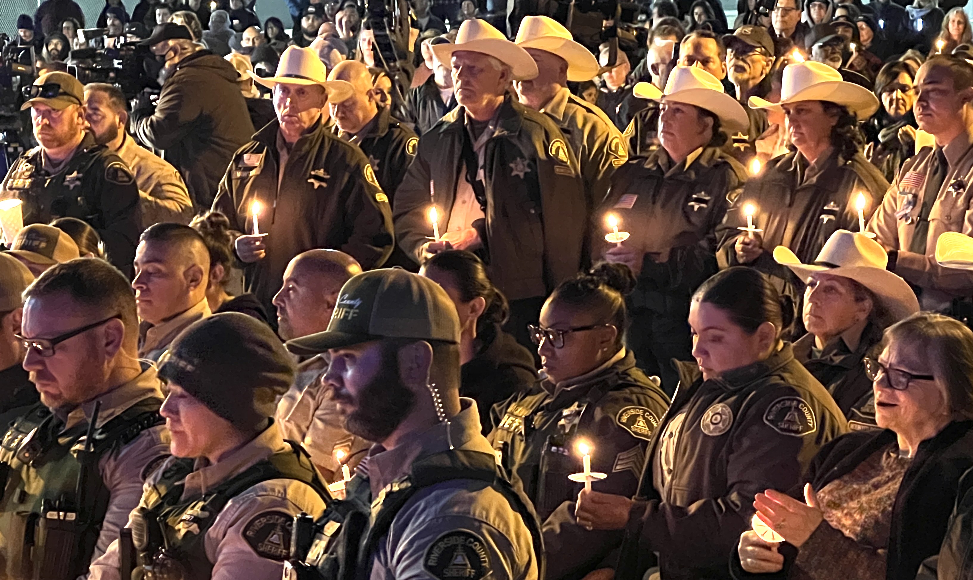 More than 1,500 mourners gathered outside the Riverside County Sheriff’s office in Lake Elsinore on Jan. 17 at a candlelight vigil to honor slain deputy Darnell Calhoun.