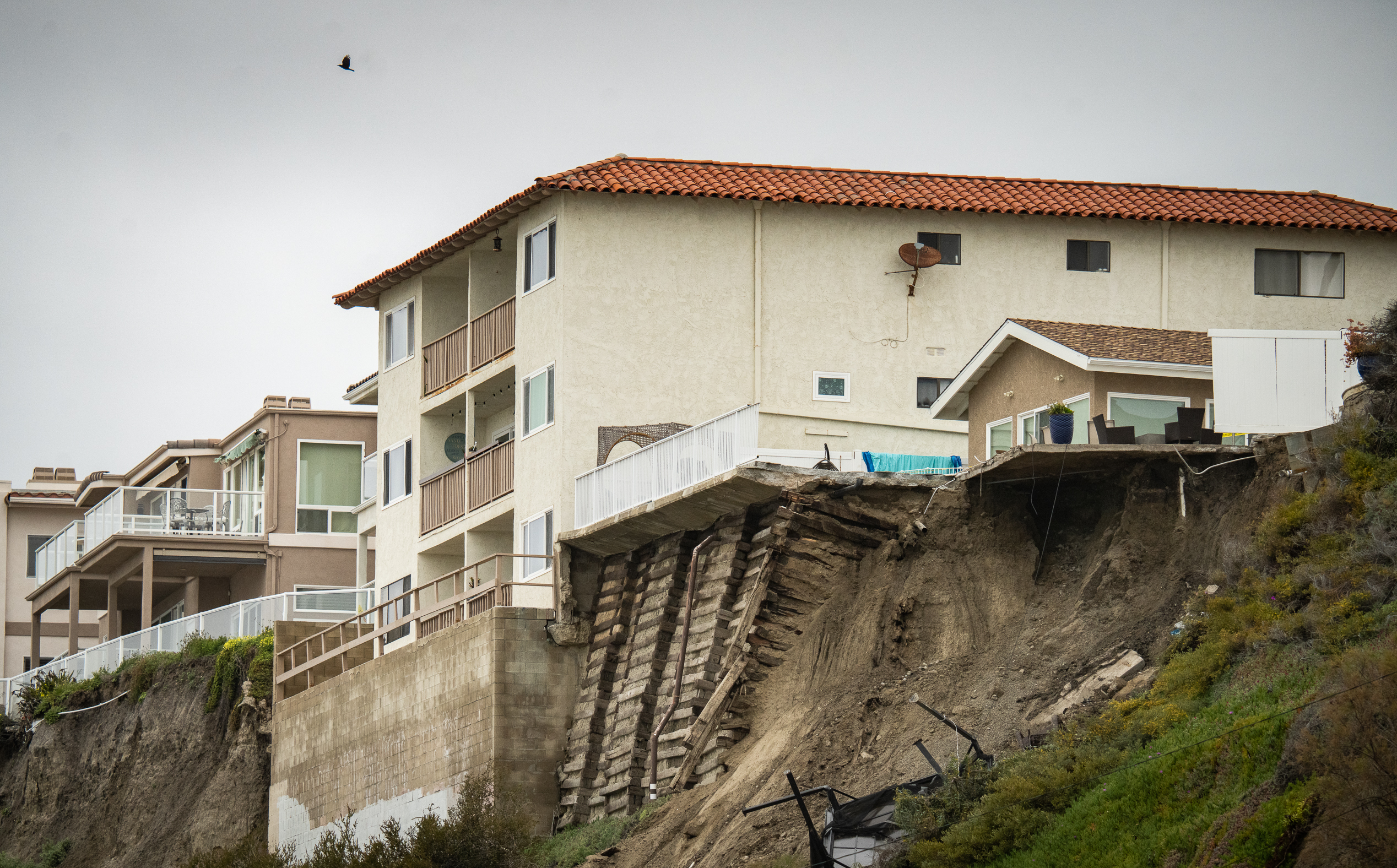 Four cliffside apartment buildings were red-tagged, meaning they are now too dangerous to be inhabited, according to the Orange County Fire Authority.