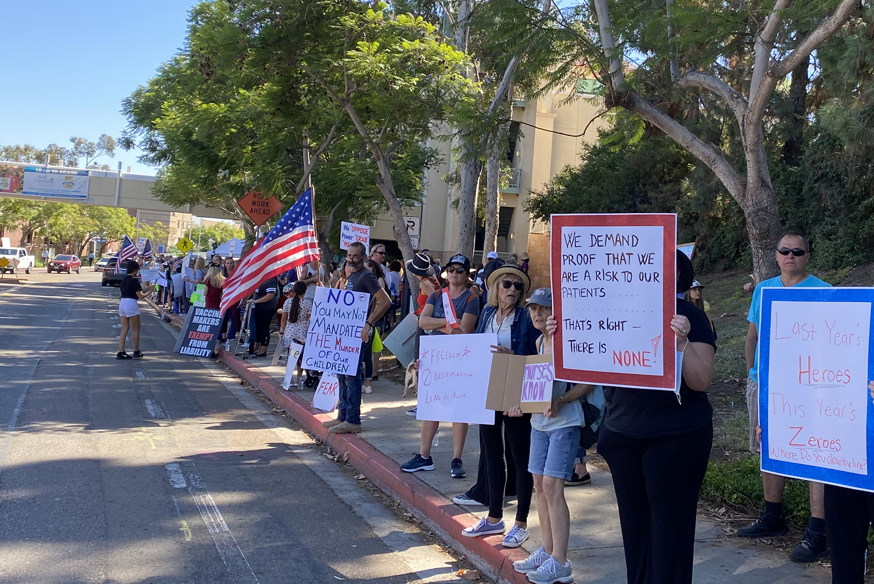Another registered nurse at Rady Children’s Hospital of 15 years who requested anonymity said, “Everybody knows the factual evidence that whether you’re unvaccinated or vaccinated, you can still spread COVID disease, either way. Why am I not safe to care for the babies that I take care of, and families each day, and they [vaccinated] are?”