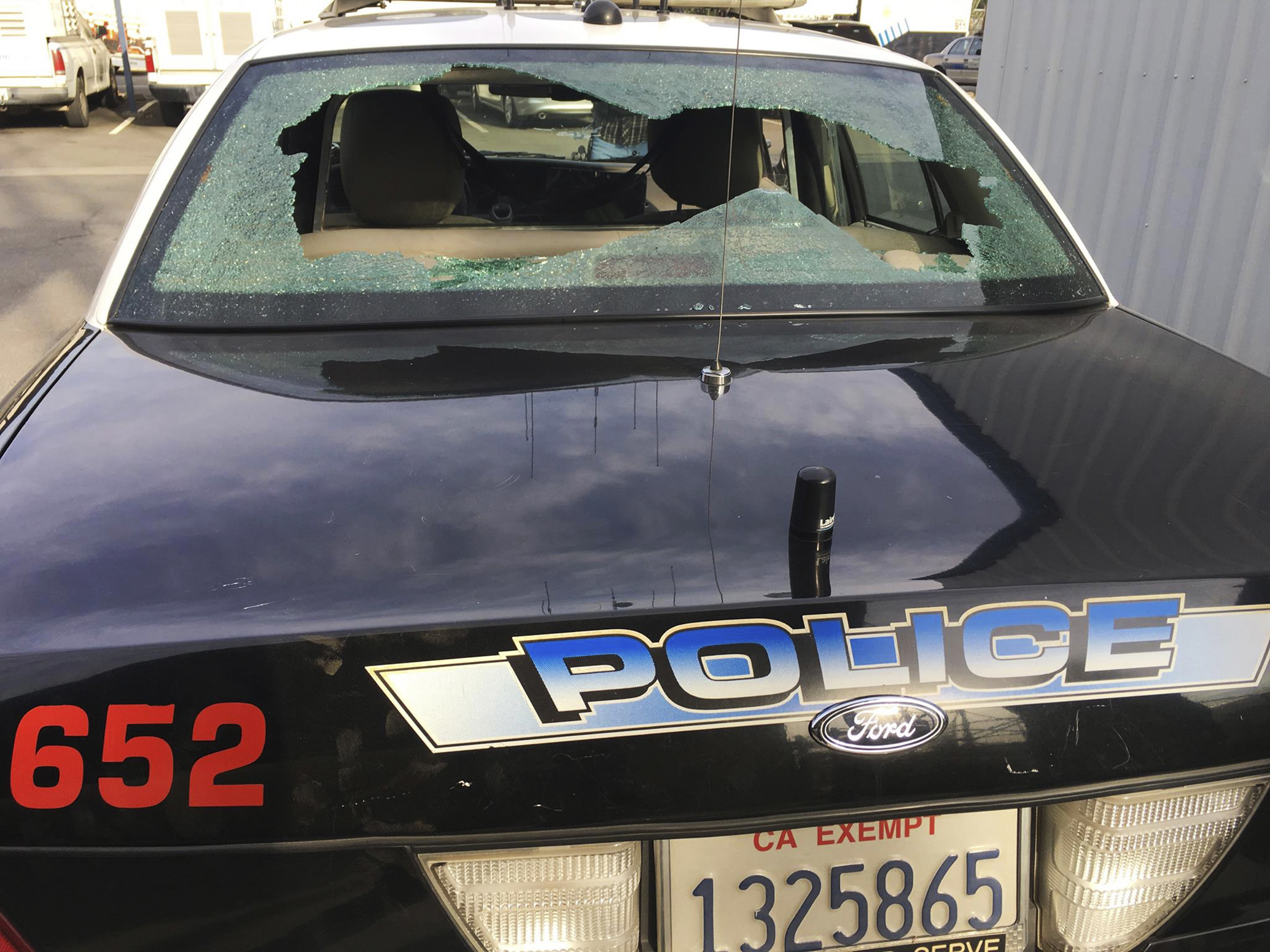 Two shots smashed the windshield, narrowly missing the woman and the police officer driving the cruiser, said Madera police Detective Sgt. Johnnie Smith
