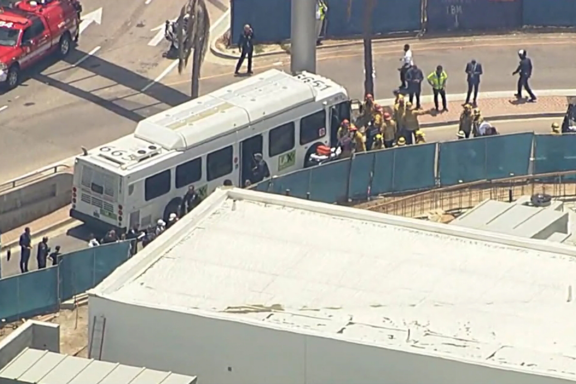 Two of the bus passengers sustained potentially life-threatening injuries, according to Margaret Stewart, a spokesperson for the Los Angeles Fire Department.