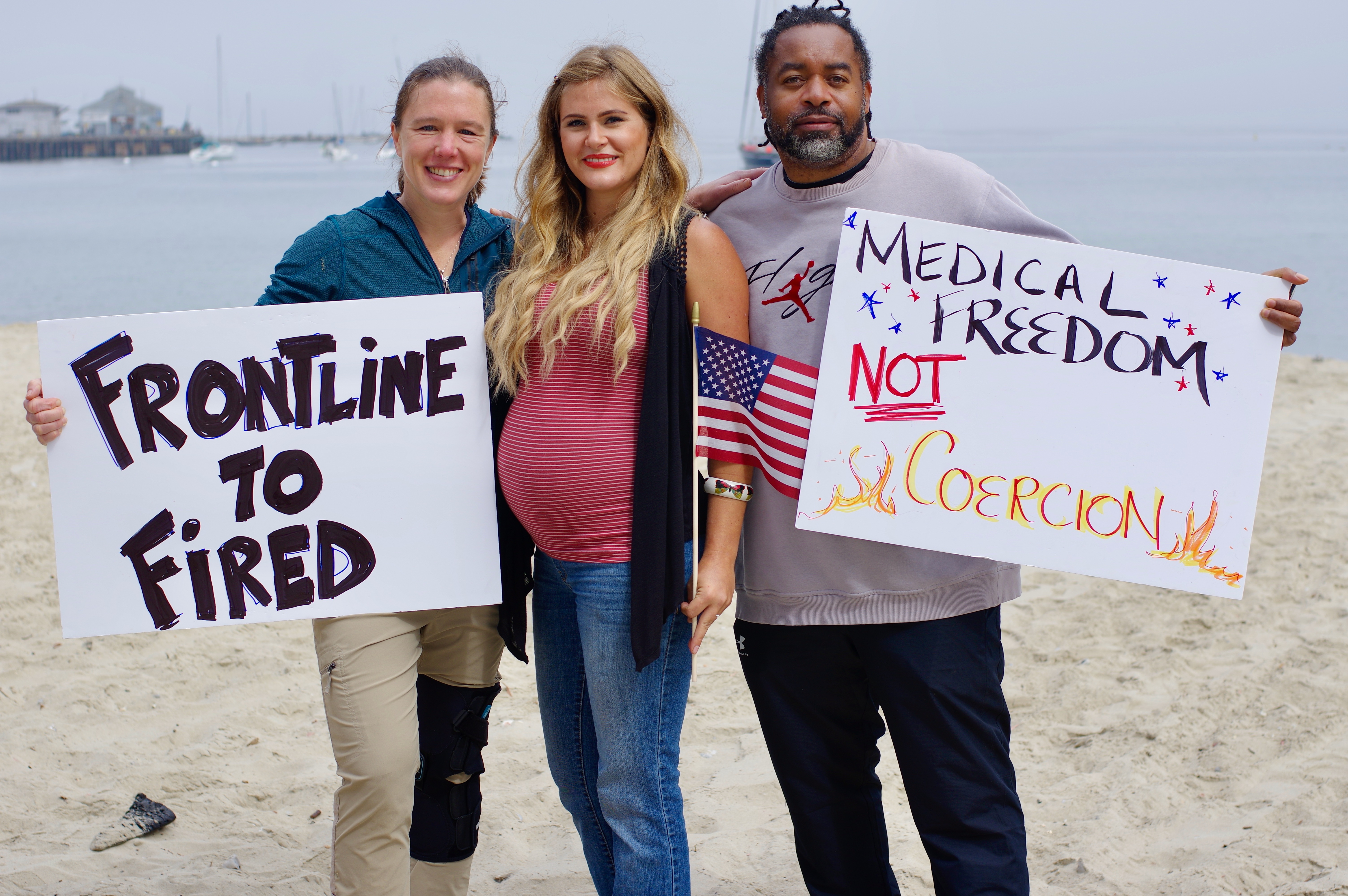 Health care workers, family, and supporters protest against vaccine mandates in Monterey, Calif. on Sept. 12, 2021. (Courtesy Patriot Freedom Fighters)