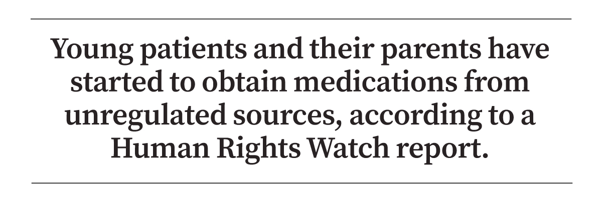 Patients are going into hiding and resorting to underground networks, according to Human Rights Watch, a pro-LGBT group. Young patients and their parents have started to obtain medications from unregulated sources, such as online sellers and other patients who have stockpiled supplies, according to the group’s June report.