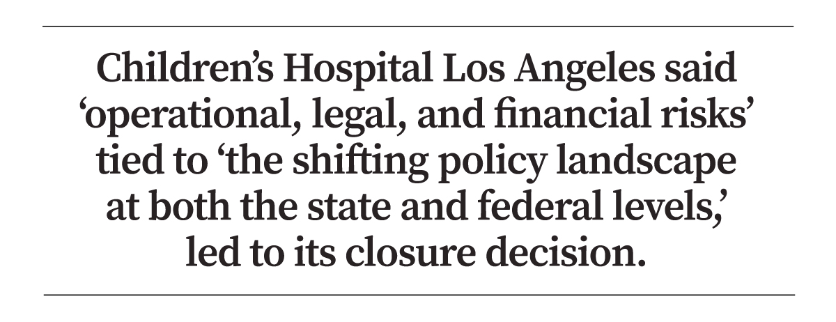 The other hospital that responded, Children’s Hospital Los Angeles, shuttered its Center for Transyouth Health and Development on July 22.