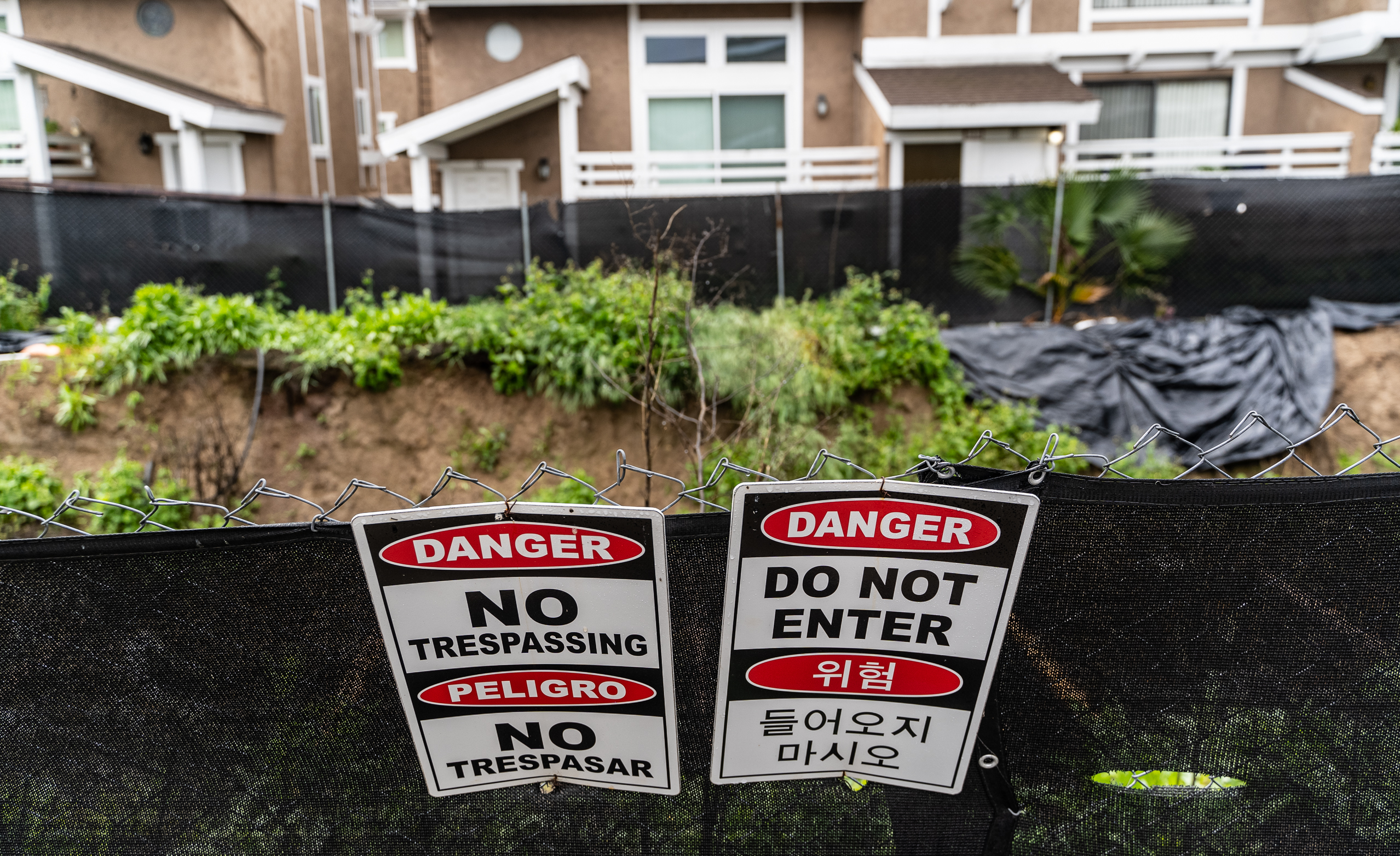 Landslides strike a coastal neighborhood after heavy rains in San Clemente, Calif., on March 16, 2023. (John Fredricks/The Epoch Times)