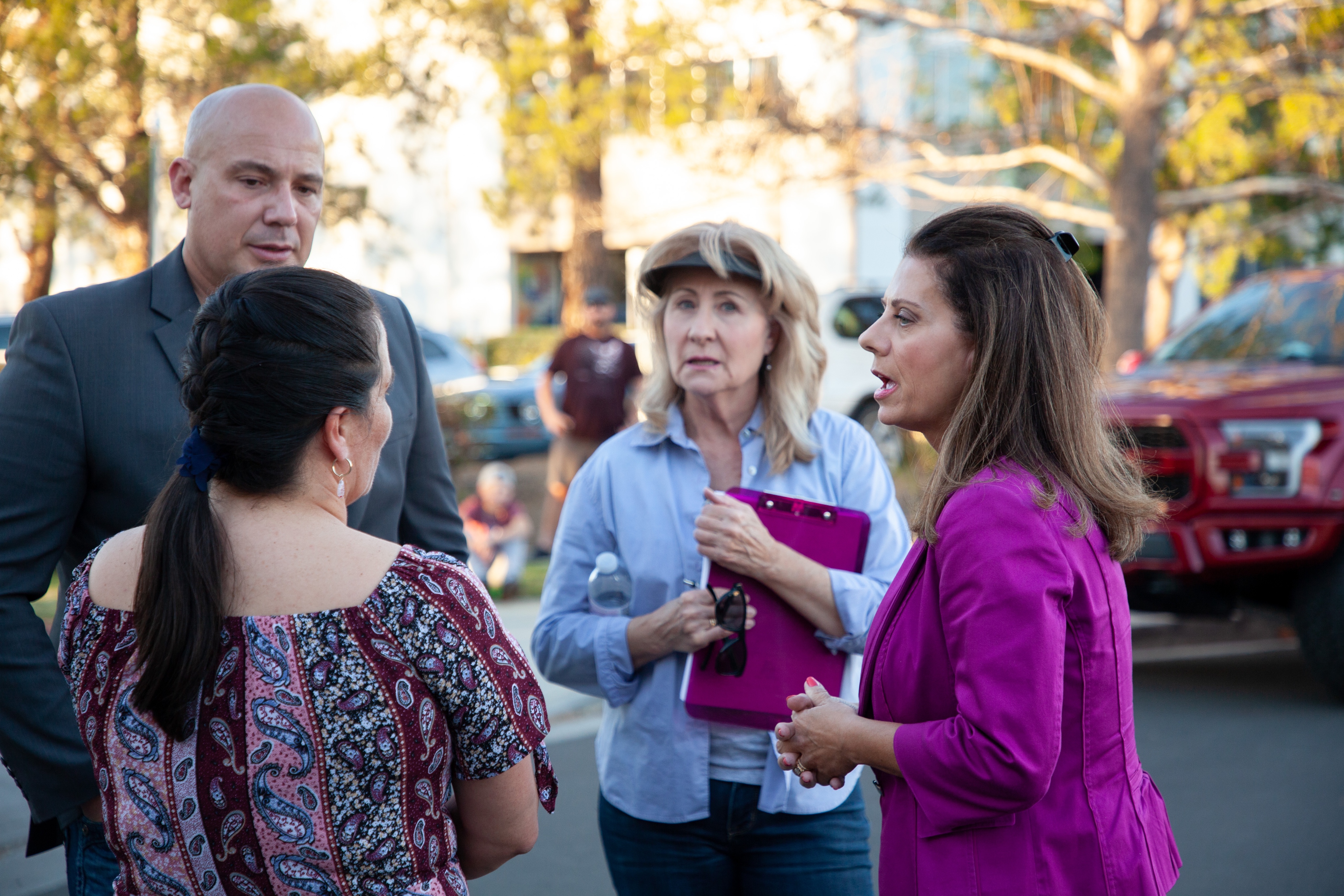 California Sen. Melissa Melendez (R-Lake Elsinore) (C), pictured with Pastor Tim Thompson (R). Thompson told board members that they were spineless and that children in the district protesting by going maskless were more courageous than they are. (Courtesy of Tim Thompson)