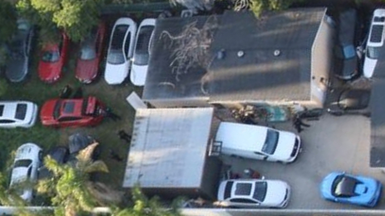 An aerial photo provided by the CHP showed the cars lined up neatly on a grassy lot behind the house.