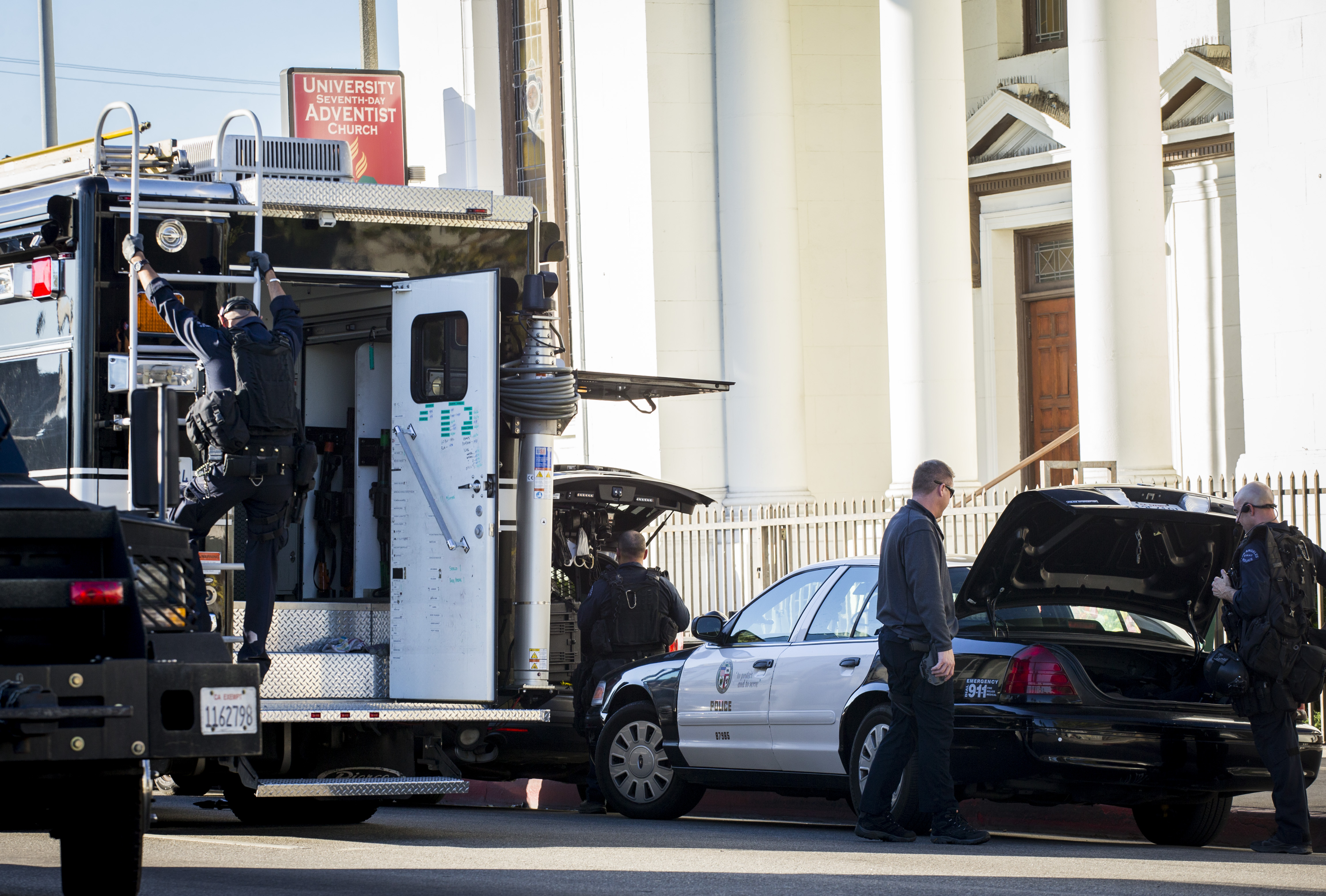The SWAT Team was responding to an armed suspect barricaded in an apartment building in the 100 block of West Fifth Street in downtown Los Angeles on May 3.