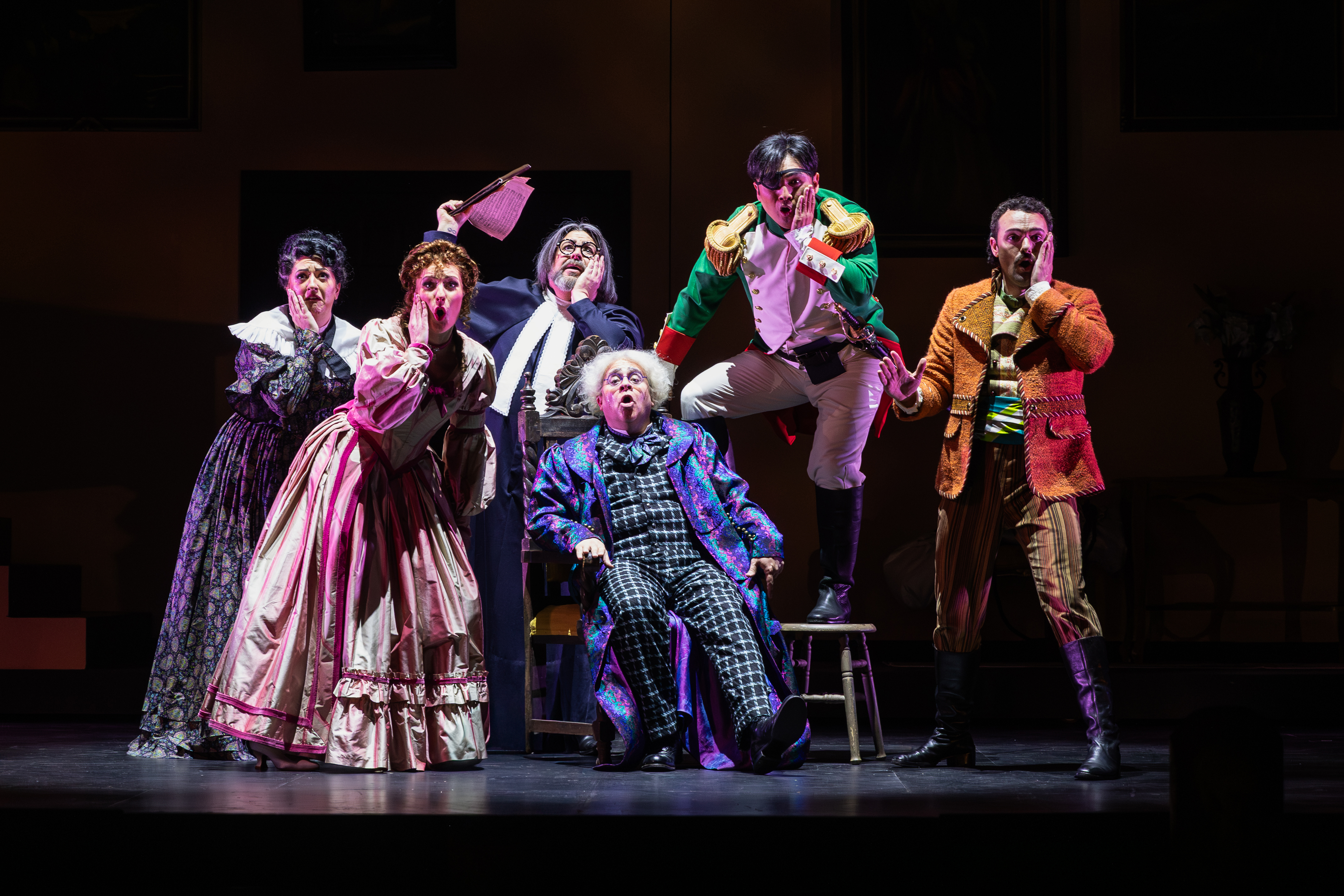 That was the case in this “Barber.” Lewd humor was inserted in a few instances through physical movements executed by the performers, sometimes using suggestively placed props. I’ve seen worse even at the university level, but it was a shame because it was very inappropriate and totally unnecessary. During one of the most famous arias from this opera, Rosina’s showstopping “Una voce poco fa,” the singer was staged to shake her head and body to accompany her fast notes, change her dress onstage, and do comedic histrionics with the assistance of supernumerary maids. It wasn’t particularly indecent, but it greatly detracted from her impressive singing, seeming to mock the music rather than complement it. Ironically, these injections of modernity didn’t elicit the uproarious laughter one would expect from a full house on a Saturday night. The biggest laughs came from the uncomfortably inaccurate supertitles, which prompted inappropriate laughter through their suggestive use of slang and vulgarity.