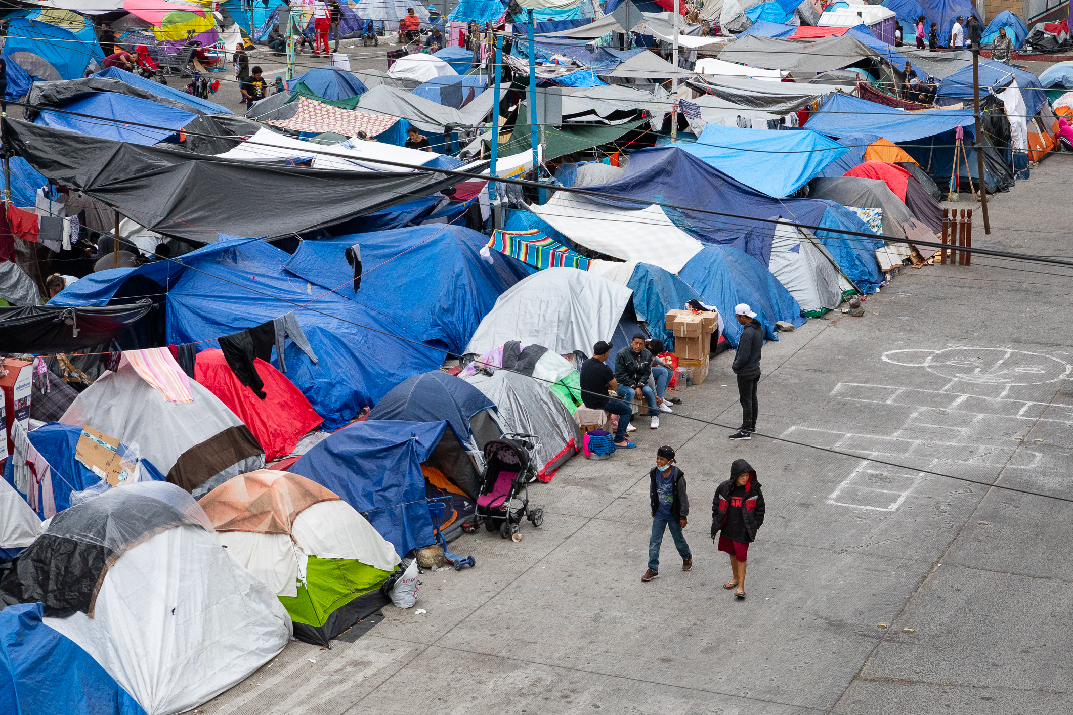 The 3-month-old encampment grows daily, while its living conditions worsen. The effects of overcrowding have prompted officials to begin relocating migrants to a nearby sports complex, said to be safer and more organized for larger gatherings of people.