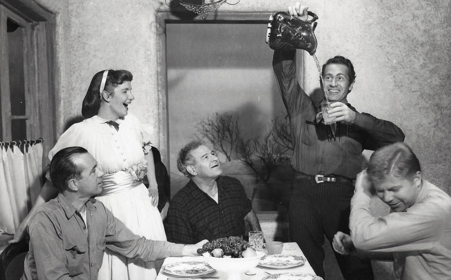 Meanwhile, their cattle are dying in the sweltering summer heat as a drought stretches on, with no chance of rain in sight. After a trip to secure a husband for Lizzie is a complete failure, Lizzie’s marital prospects seem just as dry. The one man in town whom Lizzie fancies is J. S. File (Wendell Corey), the stoic deputy sheriff. Her father and brothers go into town to casually invite him to dinner, but he knows exactly what they have in mind. He bluntly tells them he has no intention of marrying Lizzie or anyone else. As the argument escalates into a fist fight with Jim, the family goes home, losing hope of her ever getting married. Before H. C. leaves, however, he tells File everyone knows he isn’t a widower but a bitter divorcé whose wife left him years ago.