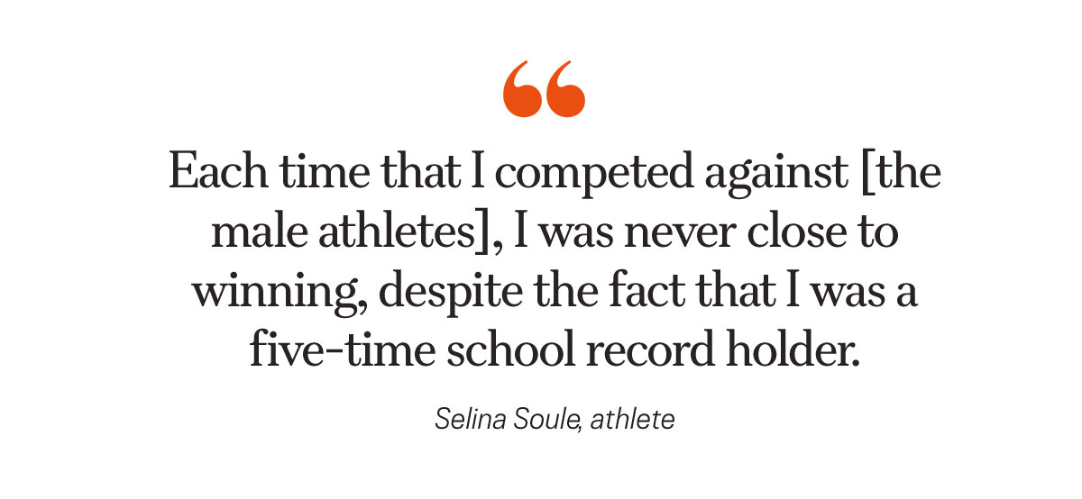 “And each time that I competed against them, I was never close to winning, despite the fact that I was a five-time school record holder,” she said.