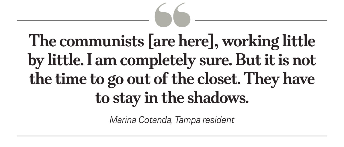 “The communists [are here], working little by little,” she said. “I am completely sure. But it is not the time to go out of the closet.”