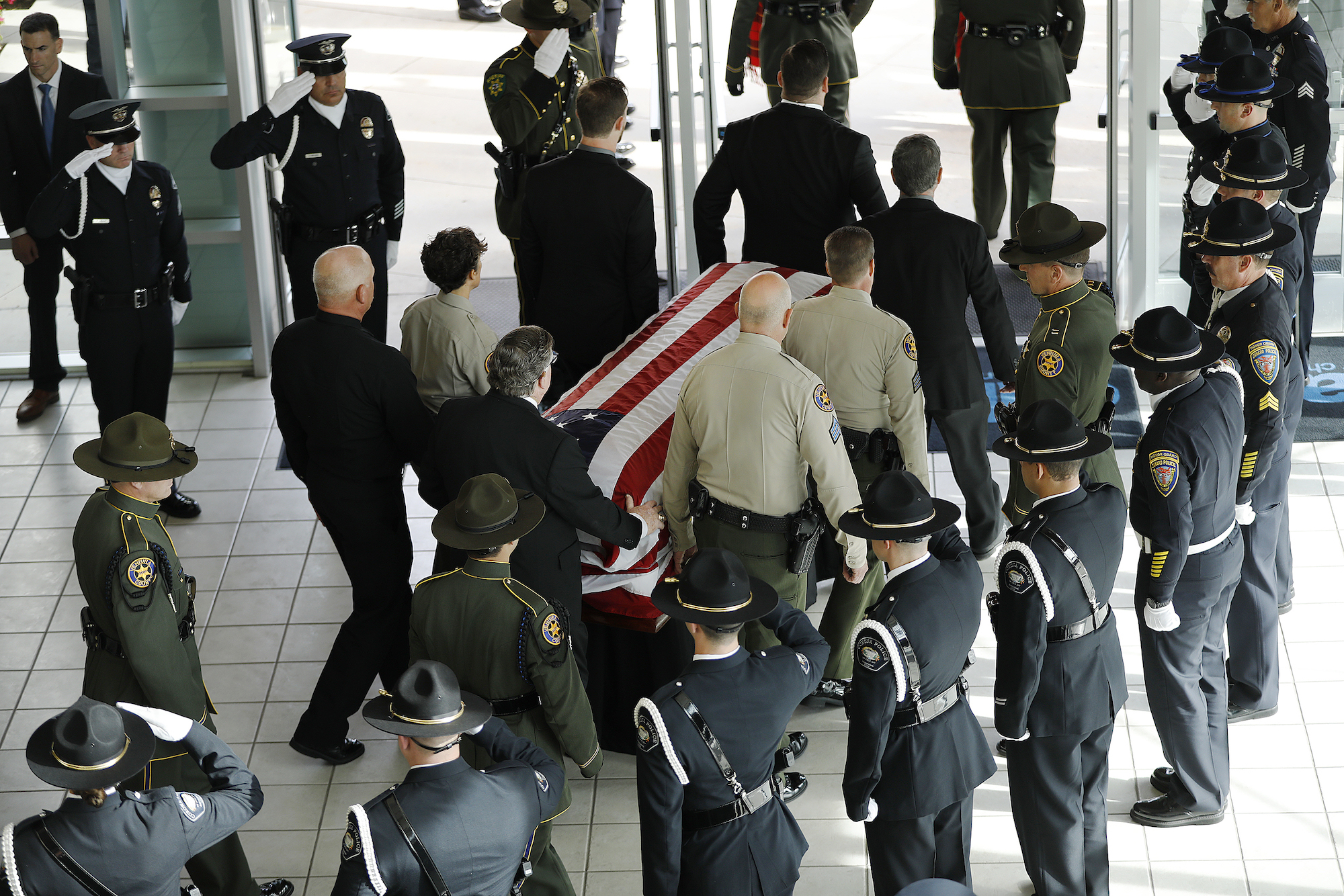 During the incident, Sgt. Ron Helus, 54, was hit multiple times and later died of his injuries. He had served the county sheriff’s office for nearly three decades and was set to retire within a year.