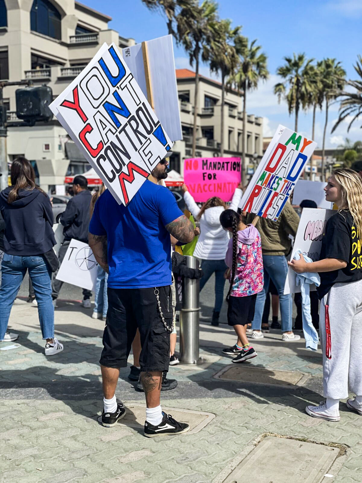 Crowds of Californians opposed to the measures swarmed the steps of the California Capitol, carrying signs that read “My body, my choice,” and “My children won’t be a science experiment to make you feel safe.”