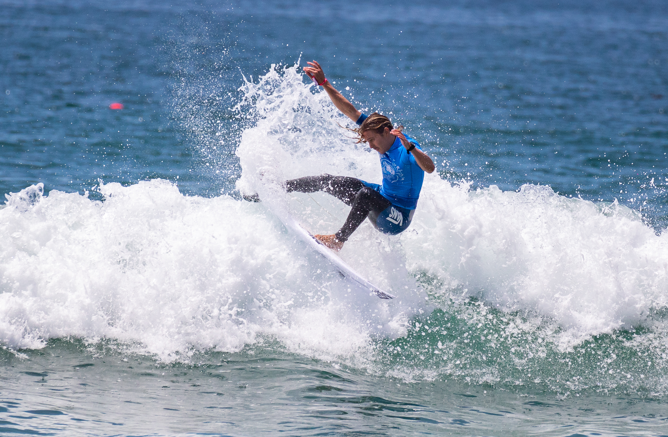 Surfer Alan Cleland of Mexico took one of the waves, throwing several powerful snaps that threw ocean spray over the top of the wave, earning himself the top wave of the heat.