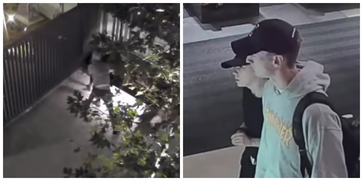 Under the grey-hooded sweatshirt, the suspect appeared to be wearing a white t-shirt with an unknown type of logo on the front, a purple or light blue hat with a white logo, carrying a backpack with what appears to be a luggage tag attached, the police said.
